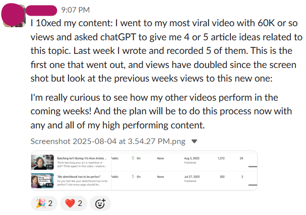 I don’t want anyone to be penalized for their timezone. All sessions will be recorded and added to the training library the same day. If you have a question and can’t make the AMA, send me it in Slack and I’ll answer with a personal Loom.
